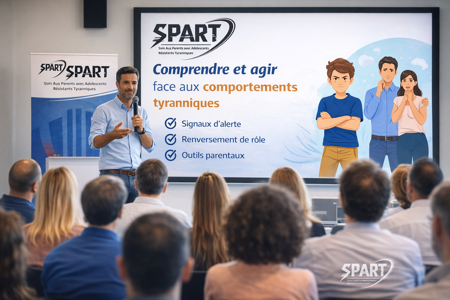 SPART organise des conférences à destination des parents, des professionnels et des structures (écoles, associations, collectivités, institutions). Elles permettent de lever les tabous, de clarifier les notions, et d’ouvrir sur des solutions concrètes.